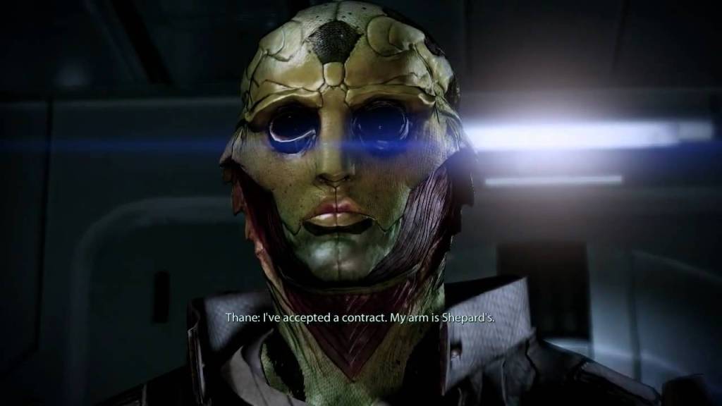 Thane Krios: Thane’s romance isn’t for everyone. The moment you meet him he lets you know that he’s dying. You don’t know when, because he doesn’t know when, but you know he only has a few years. This is because Thane is suffering from a lung disease common in his species known as Kepral’s Syndrome. So yeah, not the happiest relationship. Thane is also an assassin, so there’s reason to be cautious of him at first. But by talking to him you realize he’s quite a moralistic and even religious man. He prays for all the people he kills and though he once felt it unnecessary to care about what jobs he took, his diagnosis made him decide to right his wrongs and atone for his actions. Conversations with him are always deep and emotional as a result of the time he spends looking back on his life. If you get close enough to him, he even talks about his late wife and the fact that his job has made him absent from most of his teenage son’s life. It’s through helping him reconnect with his son that you actually start a relationship. It’s a genuinely sweet one too. He gives you a nickname after the warrior angels in his religion, he’s always checking in to make sure you’re doing okay, and the relationship grows only when Shepard and Thane open up to each other. It’s never one-sided. Mass Effect 3 is where the relationship gets more depressing. Thane can’t travel with you anymore because he has to stay at a hospital to monitor his worsening condition. He even allows you to opt out of the relationship, knowing how painful it might be to see his health deteriorate. But if you decide to keep going, he sends messages to your ship to check in. Of course, by the end of the game he dies. He has you recite a last prayer with his son, which is actually for you not for him, and then his son gives you all the video messages he filmed for you while you were away. Yeah, bring the tissues for this one. There’s no question that Thane is the most thoughtful of the romance options.