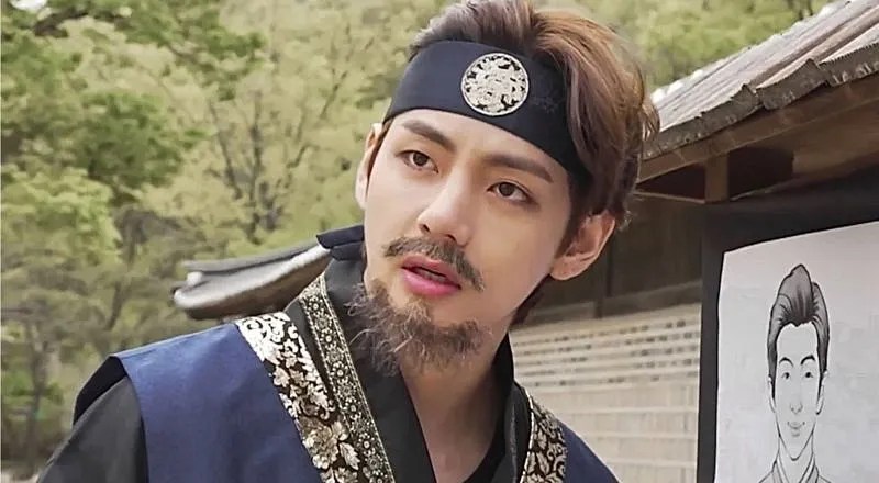 Tae was absolutely hilarious this episode. Tae was given the role of warrior, which he took the most seriously of everyone else. Tae wore a fake mustache and beard for much of the episode to get into character and talked in a deep voice. He also carried around a sword that he couldn’t always cleanly get back in the sheathe again, which made him practically laugh off his mustache several times. Tae even decided this episode that he was going to give his camera staff servant names, Dolsoe and Pandong, and asked them to refer him as master. Oh, Tae. Tae, needless to say, took his individual mission very seriously. He was in character with whoever came up to him, and he originally felt that his character would keep all the items he found for other members. But he was quick to give up the items as soon as he saw those members. Except for Jungkook, who he hid from. When he saw Jimin, his mustache and beard was coming off, so he very in character asked him to take it off. Tae joined the later meeting with members by having his staff announce him before he walked in. And he stormed out in a very drama-like huff that he felt would suit his character when he became one of the centers for suspicion. Though to me it was difficult to figure out whether Tae was suspicious or not because he was acting so in character.