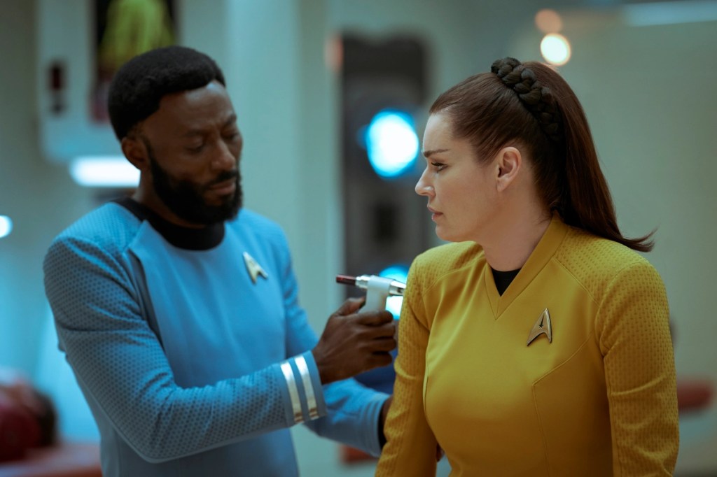 Dr. M’Benga: M’Benga is a secondary character in this episode, but he provides yet another major mystery in the show. The disease spread that occurs throughout the episode is immediately established as being nearly impossible because of the transporters. The transporters should have filtered out the disease entirely. While this isn’t the major concern of the crew left behind in this episode, it confuses Una enough that she keeps it in the back of her mind until the end of the episode. When she discovers that the medical bay transporter was responsible for letting the disease through because the biofilters weren’t updated in favor of something M’Benga’s hiding in its code. At first this feels like a betrayal. M’Benga risked everyone’s lives in order to hide something for himself, and after he’s been such a supportive and amazing doctor throughout the entire episode. But then it’s revealed that what he’s hiding is his daughter who he’s managed to trap inside the transporter, effectively holding her in stasis until he can find the cure for her deadly disease. This reveal is heartbreaking, and it’s even more heartbreaking when he admits that he’s endangering everyone and instantly resolves to stop what he’s doing once he’s confronted. Fortunately for him, Una manages to find a way around the problem and he ends the episode reading a book to his daughter. His backstory is just the right amount of emotional and his personality is just the right amount of likable that I’m very much anticipating a solo episode for him.