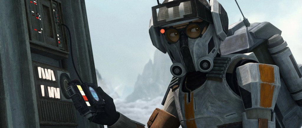 Characters: In my most recent post about ‘The Bad Batch’ I spent a lot of time complimenting this season’s character work. The issue is, that character work is shaky amongst the main cast. Character development was not done at all for Hunter and Wrecker this season. They haven’t really gotten anything aside from the basic characteristics we learned about way back during their introduction in ‘The Clone Wars’. Hunter has changed slightly, taking up a fatherly position for Omega, but I’d argue most of that was established early in season one and hasn’t developed since then. Then we have Echo and Omega, who tend to get more than their peers but honestly didn’t experience that much change this season. Echo left the Batch, but his decision to do so happened mostly off screen. And Omega has shown that she’s grown up, but her rapid change in season one slowed down considerably for season two. Then we have the two stars of the season. Crosshair wasn’t present for the majority of the episodes, as is now common for his character, but the episodes he did get were deep and heavy. He got to meet new clones, see first hand how the Empire was treating them now that they’re trying to replace them, and slowly lost his faith in the Empire altogether. These episodes were extremely effective, but three episodes out of sixteen can’t really carry an entire season. Which means we’re left with one character whose development carried the majority of the season’s episodes. That would be Tech. And if you watched the season finale you know where I’m going with this.